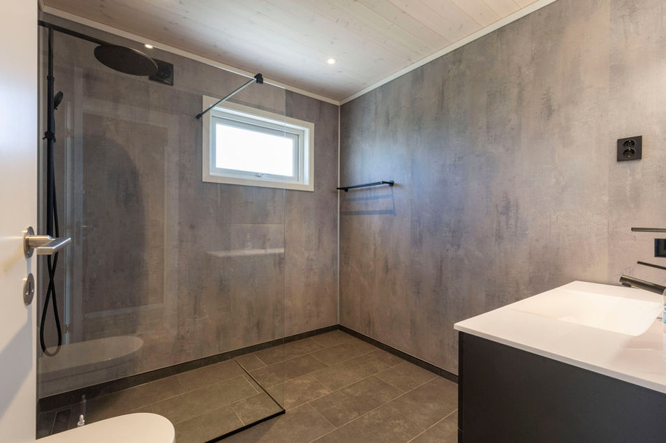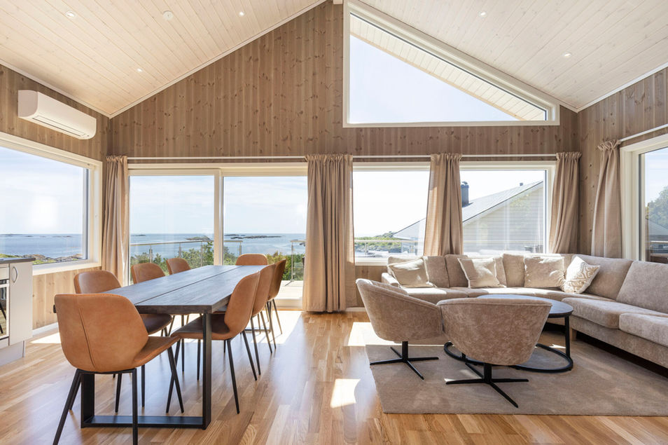 Hytta er romslig med en åpenløsning til stue og kjøkken, og har en stor terrasse med gassgrill og utsikt til havet. På hytta finner du et bad, vaskemaskin og tørketrommel. Kjøkkenet har et kombiskap samt komfyr, mikrobølgeovn og oppvaskmaskin.Hytta har kabel-TV og wi-fi inkludert i leieprisen.